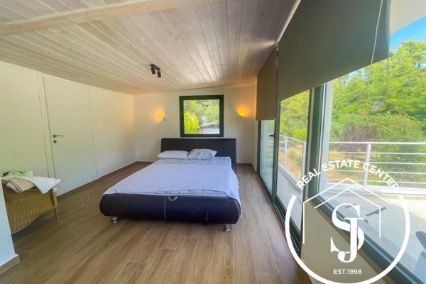 Experience the best of beachfront living in this exceptional home offering 130m² of living space, nestled among lush greenery and tall pine trees. Built in 2019 and maintained in pristine condition, this residence is perfect for those seeking tranquility, privacy, and direct access to the sea.