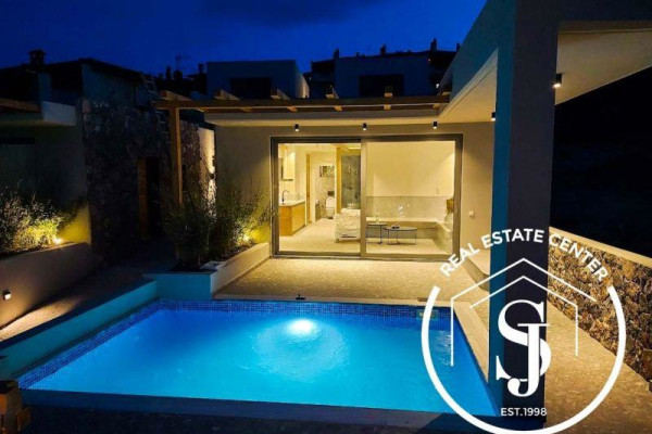 A great idea for rental income as each home has its own garden, its own swimming pool, and privacy. This is a great money-making opportunity with a private entrance and with a gated garden of 1,100 m2. Each home boasts 2 bedrooms, 2 bathrooms, a designer kitchen, and an open concept lounge with a walkout to the outdoor living area. The closest beaches are Chrouso and Kanistro, Ksenia, or great access to all the popular beach bars in that area with the blue flag for their clean waters.