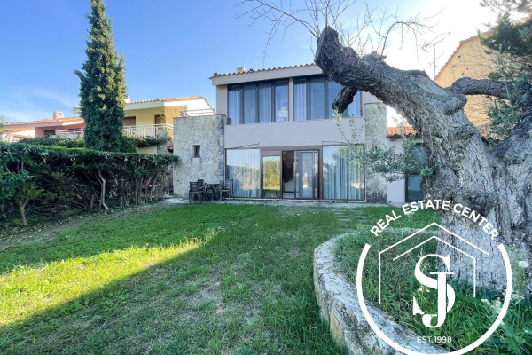 The surrounding area of 450 sq.m. complements this residence beautifully, with a lush garden, lawn and various trees and flowers. The barbeque area and parking offer excellent functionality and convenience. The area is quiet, but at the same time close to supermarkets, pharmacies, restaurants, cafes and shops. Just 10 minutes drive from the most beautiful beaches of the Kassandra Peninsula, this unique residence offers tranquility, natural beauty and easy access to all amenities.
