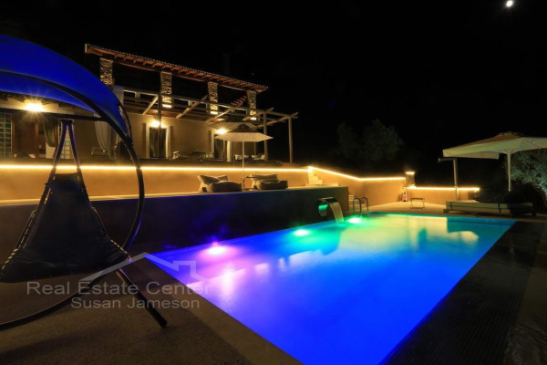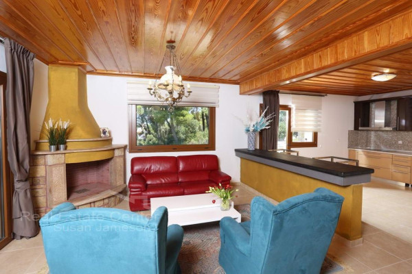 Dream Home built the logs and stone including 250 sq meters on 2 floors with 5 bedrooms, 3 full bathrooms, a super large kitchen, and a lounge with a walk-out to the terrace for outdoor living. It includes an apartment which is separate from the main home!! Many extras with the villa such as a large lot of 3,000 sq meters, A/C inverters, heating system, BBQ, fully furnished, all electricals turn-key ready. This is a must-see villa well underpriced for a quick sale by the owner. Ideal for rental income…..call to view by appointment only (No renovations needed)!!