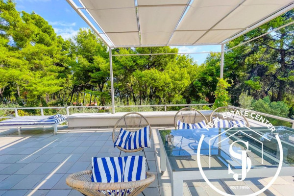 **Unique and spacious residence on a corner plot, surrounded by nature, in the beautiful Paliouri of Halkidiki**, very close to the best blue flag beaches. It is located in a completely private and quiet complex of luxury homes with a shared swimming pool. Enjoy a magnificent view towards the forest and the sea. Just a few minutes by car from Paliouri, Polychrono, the lively villages, the beach, shops and restaurants.