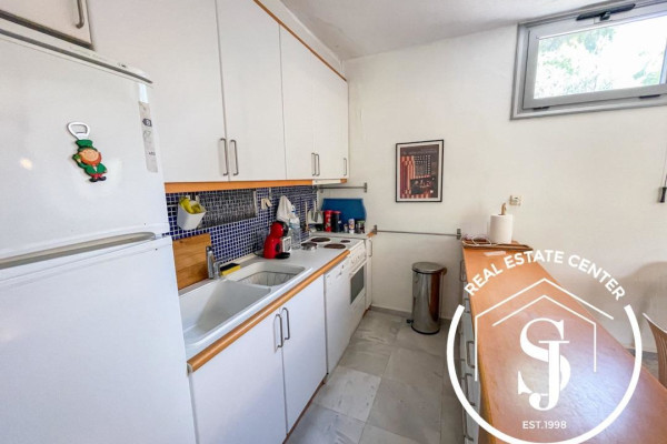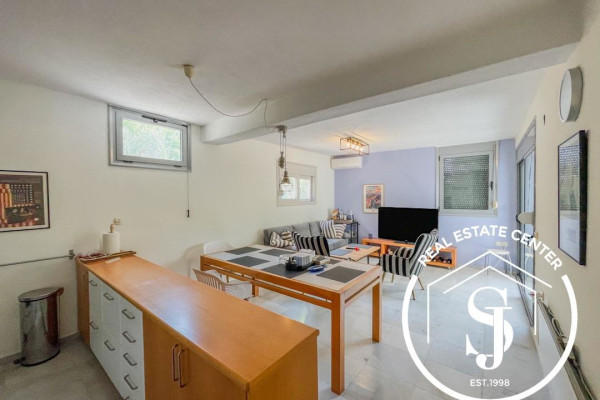 Reception area and guest WC. Large lounge and dining room with fireplace and direct access to spacious covered and open terraces and private corner garden. Fully equipped new kitchen with modern electrical appliances and breakfast area in a single layout with the living room.