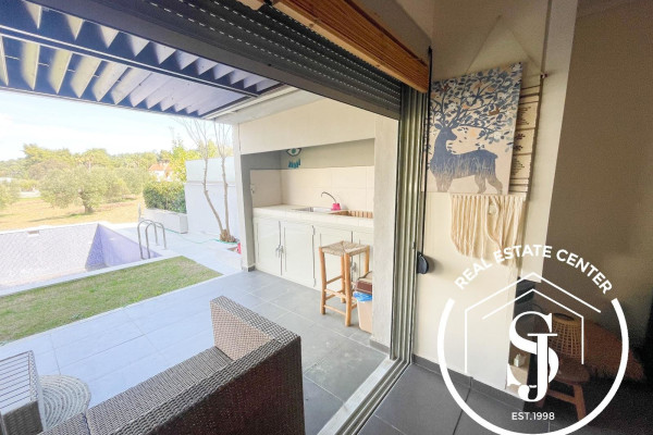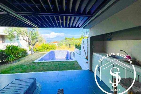 Impressive residence of 120 sq.m. for sale in Kassandra Halkidiki, ideal for nature lovers, fully furnished and equipped with high living standards. The owners bought the property off-plan and made several changes to the standard facilities, offering premium finishes and a larger kitchen design. Added shower and vanity cabinet to bathrooms, with beach views and elevated outdoor terrace offering great sunset and sea views. Other extras include A/C on all floors (3 in total), screens on all windows, and large built-in wardrobes with internal drawers and shelves in two bedrooms. Everything is in excellent condition or can become your dream home with minor changes. It is in a perfect location with an amazing view of the sea and the pool. The property has three spacious bedrooms, entertainment room, bathroom, living room with open fire, additional WC on the ground floor and laundry room. Outside there is a private garden and covered parking for 1 vehicle. This option is a great opportunity to own a home close to the best beaches, in a quiet area, with 3 bedrooms and 2 bathrooms, and plenty of outdoor space for entertaining. (FOR THOSE WHO NEED IT). High rental income. To see, call us today!! (Sold fully furnished and ready to use). Perfect for rental income! Make your offer today!
