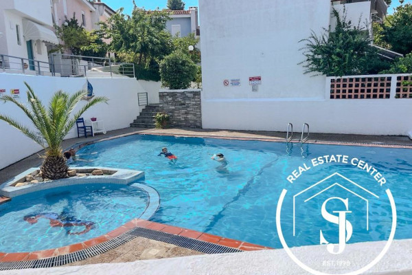 Nice well-maintained garden with chill-out area and BBQ plus a shared pool, and basketball courts.