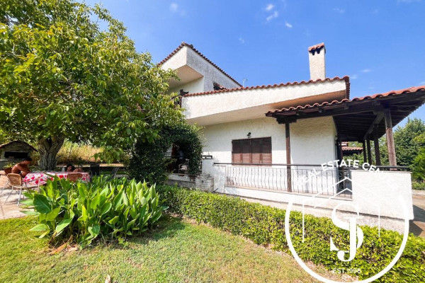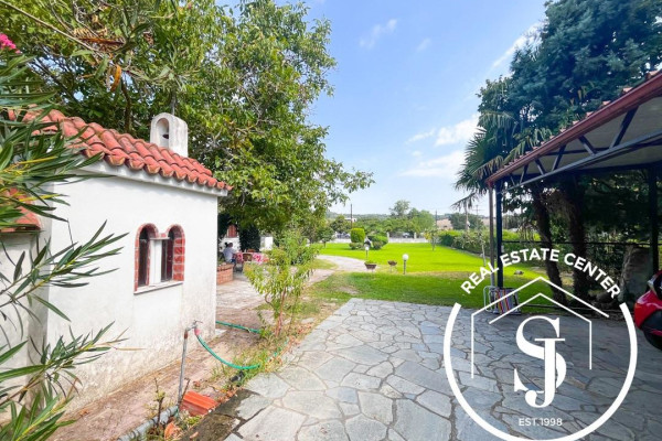 Detached two-level holiday home, 100 sq.m., strategically located near Kassandra, with wonderful garden views. Built on a well-kept plot of 1,220 m2, it is fully fenced and exudes a beautiful Mediterranean atmosphere with plants and shrubs. The garden is an ideal space for outdoor living during the summer months!