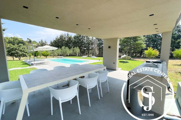 Superb retreat boasting modern architecture ideal for your summer vacation!! Exquisite villa including 4 separate apartments on 3 floors with 250 sq meters of living area including 6 bedrooms, 4 full baths, including living rooms and kitchens plus a wrap-around balcony with gorgeous views of the valley. The lounge with a walk-out to the oversized patio overlooking the private pool with its pergola outdoor kitchen and fine dining area. As you approach the home which is gated you have a private garden of 4,465 meters including a private pool, plenty of trees on the plot & parking for 3 or more vehicles. The owners will be leaving the home fully furnished and the home can be transferred into a main villa or left with the apartments including the nanny suite on the main floor. The area of Kalithea is an exciting town and summer destination with many nightclubs, gorgeous beaches, fine boutiques, cafes, and much more. exposes the buyers to the best beaches of Halkidiki. Very easy access from the airport or from Thessaloniki!! With the finest panoramic views of the mountainside and valley, the home is also surrounded by tall pine trees. This home must be seen to be appreciated call us today for more information or to view it!!! Built-in 2004 partially renovated 2022 *** owners willing to negotiate ***