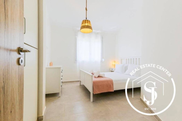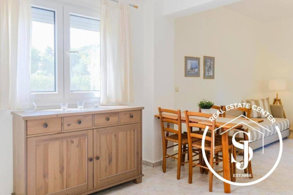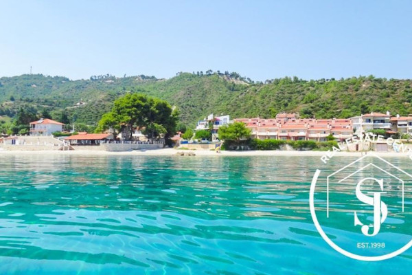 Located just 150 meters from the sandy beach of Nea Skioni in a quiet and charming seaside settlement, it has private gated parking for added convenience and security.