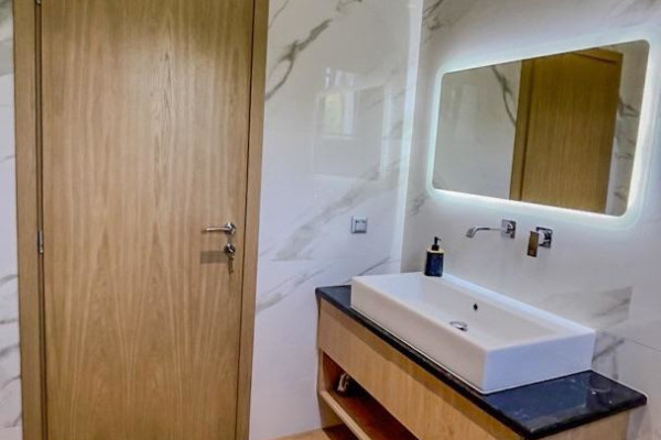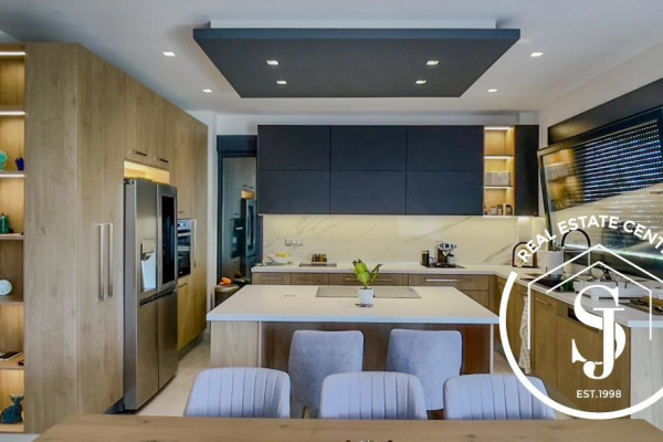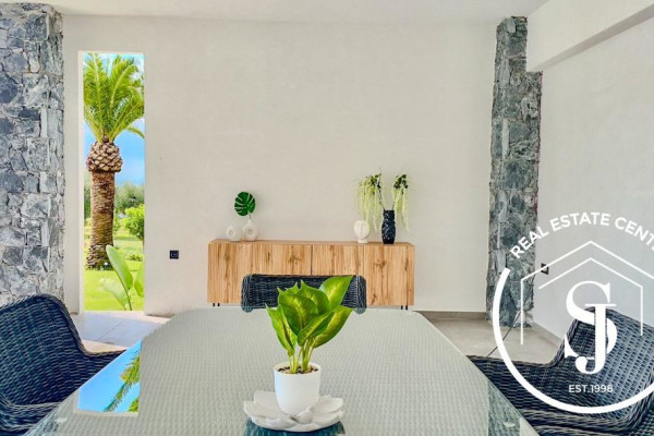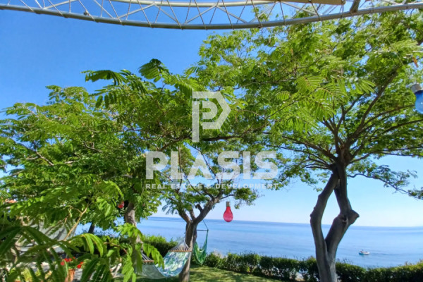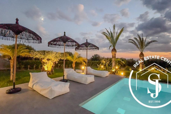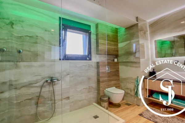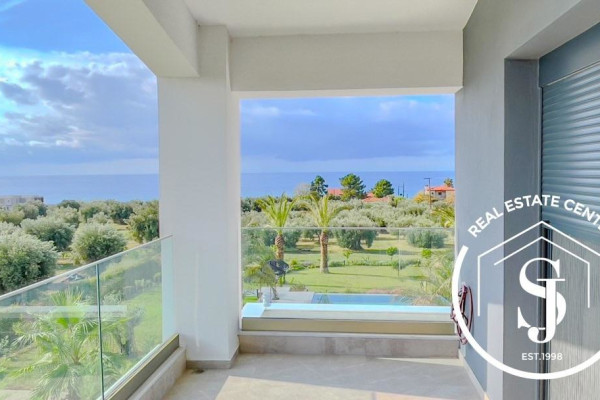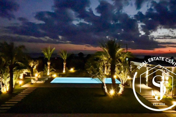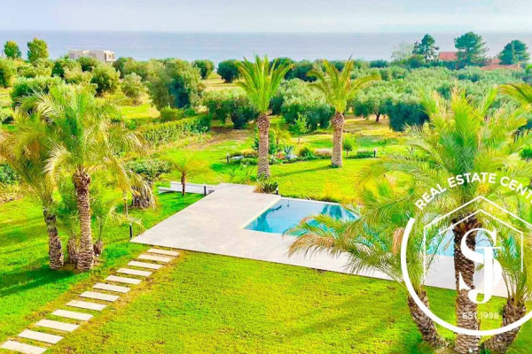 Discover this unique residence, designed by an architect, located in a quiet and wooded area of 5000 m2. in the popular area of Kassandra. Overlooking the sea and only a few meters from the beach (200 m), this private, peaceful oasis offers a combination of nature and art. The impressive entrance welcomes you to this unique 200 sq m home, which offers 4 bedrooms and 3 bathrooms, providing comfort for the whole family. The kitchen and dining room are open to the living room with floor-to-ceiling windows, creating a cozy space with a fireplace. French doors lead to an expansive, paradise-like terrace with outdoor seating around the private pool. Impressive windows on the staircase stretch from top to bottom, offering views of the manicured garden. Built in 2020, the villa is designed for luxury with a simple and easy-to-maintain design. It has a separate covered area for the car with a workshop and storage space above. Don't miss the opportunity to live in nature and enjoy coastal life. Private viewings by appointment only. **The villa is sold fully furnished and ready to use.