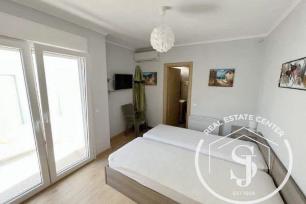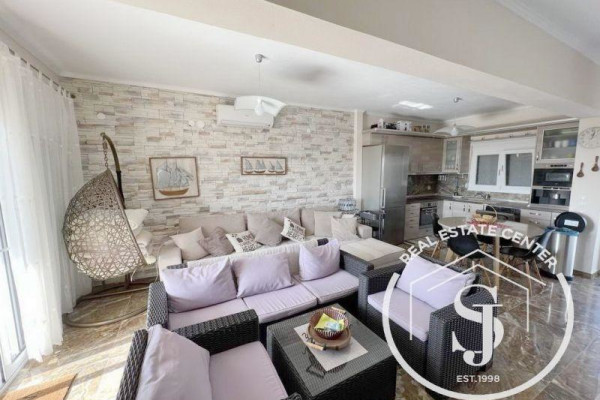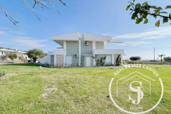 This fabulous corner beachfront villa enjoys a central and quiet location in one of Nea Skioni's most prestigious areas in the family-oriented town of Kassandra Halkidiki. It is located in the town's promenade hotspot, boasting beautiful views of the sea, beach, and port. It has 166 square meters of living area including 4 bedrooms, 5 bathrooms, a chef-style kitchen, and a lounge. 800 m of outdoor living with a gorgeous garden with plenty of privacy. The balconies are spacious and the outdoor living room is beautifully airy with gorgeous sea views. The building is widely considered the best one in the area for its location and build quality. 2 parking spaces also come with the property. Enjoy living in a practical and popular environment with stunning views! The home is being sold fully furnished and with all the electricals, GREAT FOR RENTAL INCOME!! AMAZING INVESTMENT, CALL TO VIEW TODAY!!!