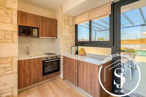 Maisonette For sale, floor: Ground floor, 1st (2 Levels), in Kassandra - Poseidi. The Maisonette is 95 sq.m.. It consists of: 2 bedrooms, 2 bathrooms, 1 kitchens, 1 living rooms and it also has 1 parkings (1 Open). The property was built in 2025, Air conditioning, Solar water system are also available, it has Synthetic frames, the energy certificate is: A+ and its floors are Tiles. The property's status is: New development, 800 Meters from seaside. The Maisonette is Painted, Furnished, Bright, Airy, Luxury, it is suitable for Holiday home, Business, Investment and it also has the following unique features and advantages: Window Screens, Internal staircase, Swimming pool, Garden, Security door. Price: €300,000. Real Estate Center Susan Jameson, contact phone: +302374063603, email: