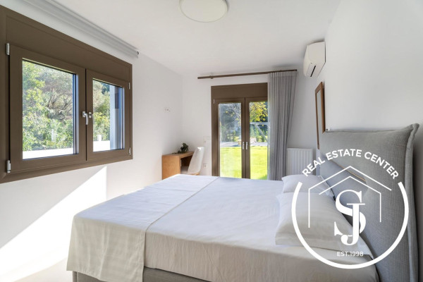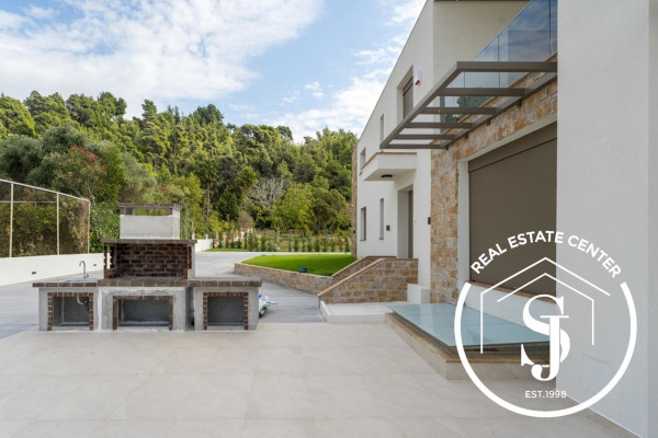 Situated in a quiet location in the thriving beachfront area of Kassandra, surrounded by luxury properties this handcrafted distinctive custom luxury estate, built with extraordinary materials, was designed to offer the utmost privacy to the owners, coupled with the builder's reputation for unsurpassed quality & meticulous attention to detail. Perfectly sited on the 2,500 m expansive lot, the location of the estate was established to accommodate the sprawling open floor-plan & extensive outdoor hardscape. An Entertainers Paradise backyard features a remote-controlled infinity edge custom in-ground pool with lighting options. Cozy up to the luxurious outdoor living space, with multiple seating areas, and extensive outdoor lighting. The home comprises over 230 m of floor space on 2 and a half levels boasting 3 bedrooms, including a 2nd level lavish owners suite w/balcony, huge walk-in closets, luxurious attached spa-like bath, & attached sitting room. In the exemplary Mediterranean style, the property incorporates formal entertaining areas complemented by casual & comfortable living spaces. Reclaimed antique natural flooring & oversized windows, providing sun-drenched interior natural lighting, define the interior. The state-of-the-art gourmet chef's kitchen was designed as a relaxing area for eating & entertaining incorporating a design finish selection custom built cabinetry, soft close drawers & doors, under counter lighting & receptacles, Viking appliances, stone and old-growth mantle with custom range hood, large center island with quartz counter. A fabulous concealed coffee bar behind custom doors and a huge walk-in pantry complete the kitchen area. A soaring Great Room, lies in front of a colossal-sized deck with built-in lighting and breathtaking backyard oasis views. A high-tech, under-deck drainage system to ensure the expansive lower-level stone patio keeps dry, was thoughtfully installed. A living room and a powder room bath finishes off the left side on the main level. A generously sized mudroom with lots of custom cabinetry, built-in storage bins, and a laundry room, complete this main level. The opulence continues with the villa offering many extras which help maintain the beautiful outdoors. A private heating system with A/C inverters completes this magical offering by the owners.... (in front of the sandy beach is the beauty of this home) for more questions or to view call one of our agents today…… BY APPOINTMENT ONLY ***NEGOTIABLE, ***GREAT RENTAL INCOME.