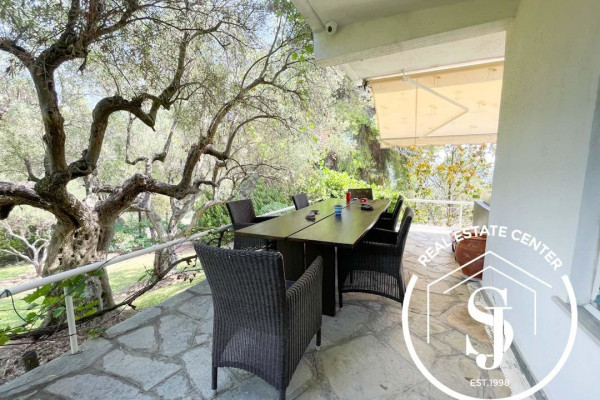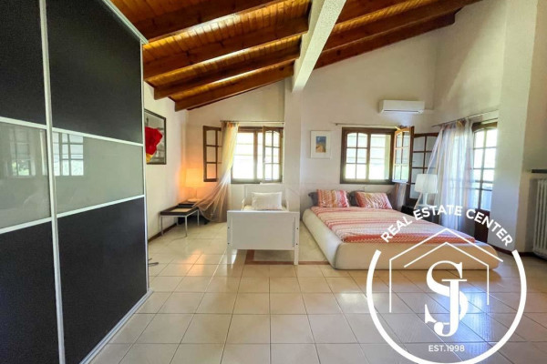 Exquisitely renovated and architecturally designed to reflect traditional modern elegance luxury home is for sale in a gated upscale area of Posidi Kassandra Halkidiki. The villa has a total of 225 sq meters of living area including three bedrooms, two baths, a designer's dream gourmet kitchen, and an open extended lounge with walk out-to-large patio with a pergola for alfresco outdoor living during the summer months. The private manicured garden of 4,200 around the home has lush trees including palm and pine trees and plants making the home cool in the summer months which gives the new buyers plenty of potential for a swimming pool, tennis courts, basketball courts, etc. Interior design and entertaining in mind have played a role in the decor of this home which offers a neutral palette and can be changed very easily by the new owners. All the furniture which is being offered by the owners with the sale is top of the line as well as all the electrical appliances. The home has a view of the sandy beach from the main balcony with shade for most of the day. This is a must-see prime location and home, don't miss this opportunity to view this turn-key luxury property including many extras. Please call for your private viewing by appointment only. (**350 m from the sandy beach).