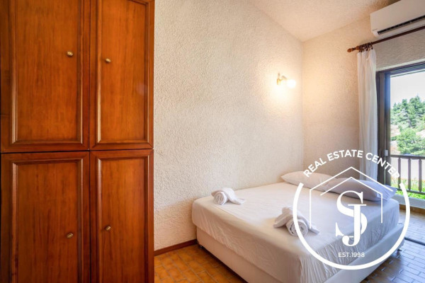 The Elani area is a scenic area known for its scenic beauty and charm, just a short drive from the nearest town. This beautiful house of 90 square meters offers three bedrooms, two bathrooms, a separate kitchen and a separate living room with a walk to the 50 square meter garden offering a wonderful view of the tall pine trees that have a wonderful pine aroma during the hot summer days. The house was built in 1987 and is in excellent condition and is offered by the owner fully furnished and turnkey ready for your summer vacation. The house complex is fenced and safe for children to play and safe for parking your vehicle. Many extras with the home, to view call us today. Don't miss out on this great deal perfect for your rental income or vacation destination!