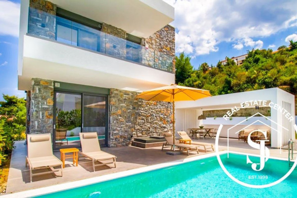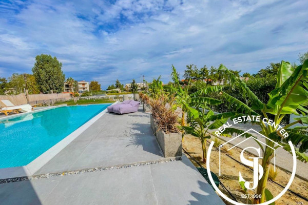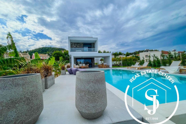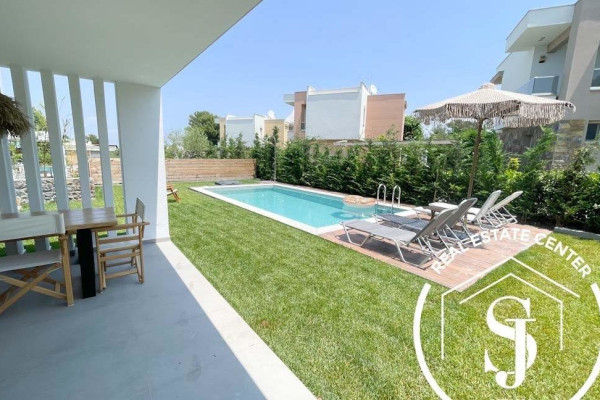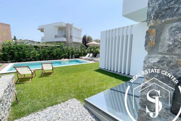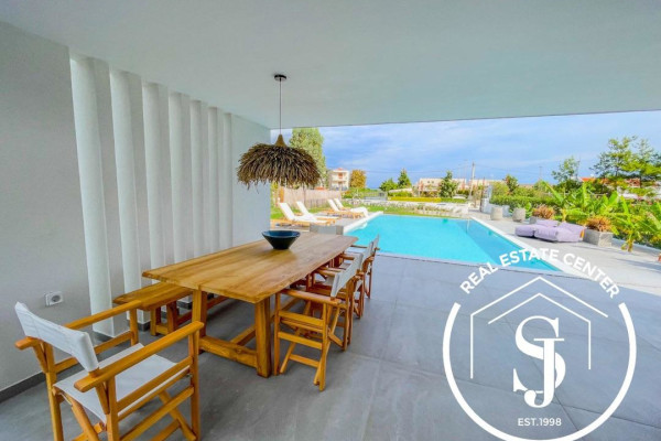 NEW HOMES Pefkohori GLAROKAVOS AREA FOR SALE ground floor maisonette with a total area of 180 sq.m. on a plot of 400 sq.m. only 200 meters from the sandy beach in the thriving seaside tourist town of Pefkohori. The villa consists of 4 bedrooms, a living room with an open-concept designer modern chef style kitchen, 3 bathrooms, and WC. Construction starts 2024 with energy class A+ and has heat pump heating, sea view, sliding aluminum frames, marble and tile floors, wardrobes, parking, storage, garden, private swimming pool, A/C, alarm, screens, double glazing window fittings, solar water heater, BBQ, playroom, satellite dish, internal staircase, balconies 40 sq.m. Gorgeous outdoor alfresco living with the distance from town is 1500 meters distance and from airport 90000 meters – Ideal for rental income, personal viewing by appointment…READY IN THE END OF MAY 2025