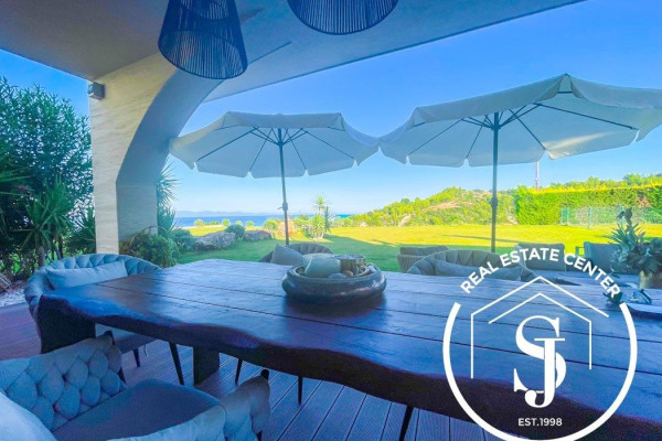 Discover this elegant residence in the developing seaside town of Hanioti, Halkidiki, with 144 sq.m. carefully designed spaces and a unique panoramic view of the sea.