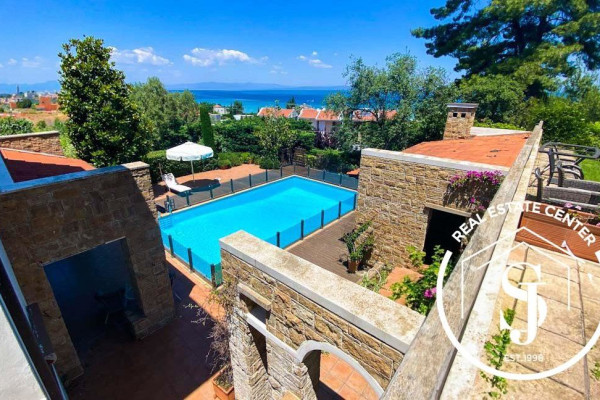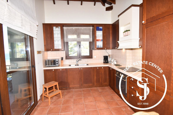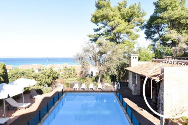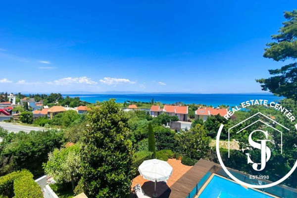 Luxurious traditional 6-bedroom villa with views, all high-quality finishes, and chic design using plenty of natural wood. The villa is in a private plot of 1200 m in an exclusive area and pristine turn-key condition with some furniture. The villa has a lovely sea view and overlooks where the sun sets in POLIHRONO. This amazing house overlooks the rustic woods of protected land, making it a very private location. With a private pool along with manicured gardens, an outside paddle kiosk with a kitchen, and an outside kids' area. The house is designed with exquisite traditional Greek living. At the same time, it brings outdoor views and spaces to the indoor areas, with lots of light clarity and clean lines. Very airy and open, the perfect place to relax and enjoy Greece's weather and views. Great location (200 m from the sandy beach), villa is within a short walk to Polihrono, in the finest beaches, where you can enjoy the sun, white sands, turquoise waters, and of course, some impressive sunsets. Also, well-known beaches such as Ksenia, Glarokamvos, and many more are just a short drive away. SUPER GREAT RENTAL INCOME, EXCLUSIVE LISTING, CALL US TODAY (JAMESON REAL ESTATE) NEGOTIABLE!!!