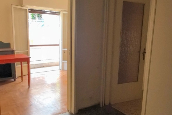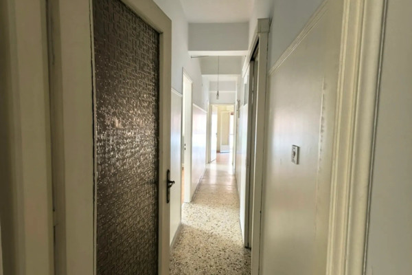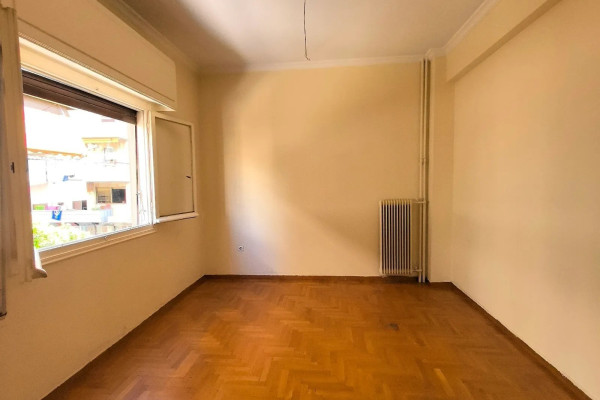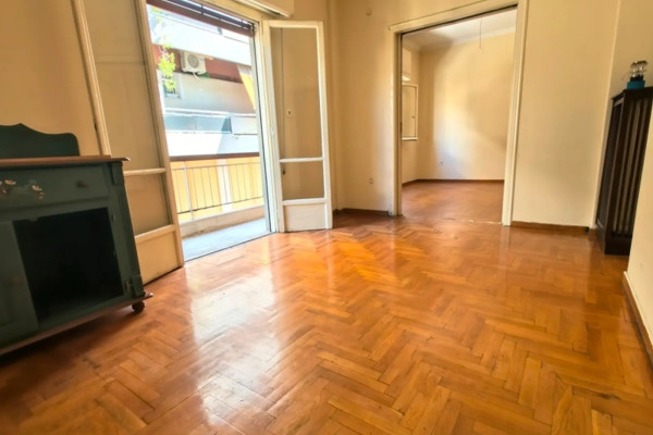 Kallithea, Center. A 97 sq.m. first-floor apartment, corner unit, front-facing, airy, and bright. Built in 1965, it consists of 2 bedrooms with the possibility of adding a third, a two-area living room, a kitchen, and a bathroom. It features an elevator, security door, balconies, awnings, a bathroom window, and mosaic-flooring. It requires renovation. Suitable for owner-occupation and investment. Located in a central yet quiet neighborhood, close to Davaki Square, public transport, schools, shops, and dining options.