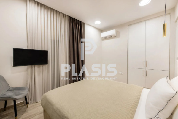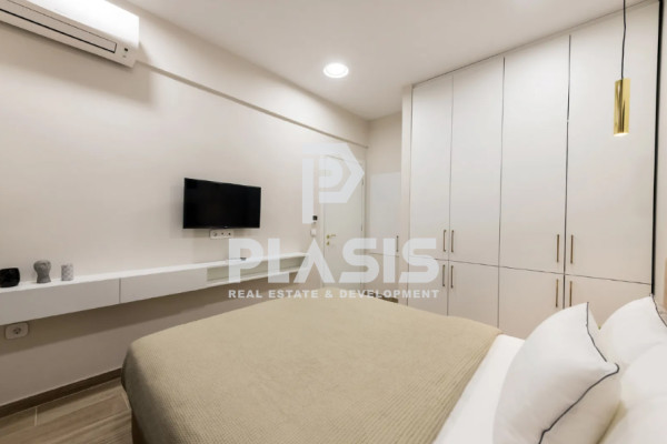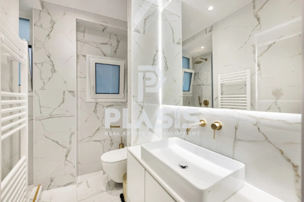 Apartment For sale, floor: 6th, in Center of Thessaloniki. The Apartment is 100 sq.m.. It consists of: 3 bedrooms, 2 bathrooms, 1 kitchens, 1 living rooms. The property was built in 1980. Its heating is Autonomous with Natural gas, Underfloor heating, Air conditioning, Solar water system are also available, it has Aluminum frames, the energy certificate is: A and its floors are Tiles. The property's status is: Renovated, Excellent condition, it is close to Transportation, Seaside, Lefkos Pyrgos, Cafe/Restaurants, Local market, it has Good view and it has Southeast orientation. The Apartment is Furnished, With Facade, Bright, Luxury and it also has the following unique features and advantages: Tents, Elevator, Electric Appliances, Storage, Security door, Security alarm, Porch, Drains. Price: €540,000. Plasis Real Estate Glyfada, contact phone: 2109601909, email: