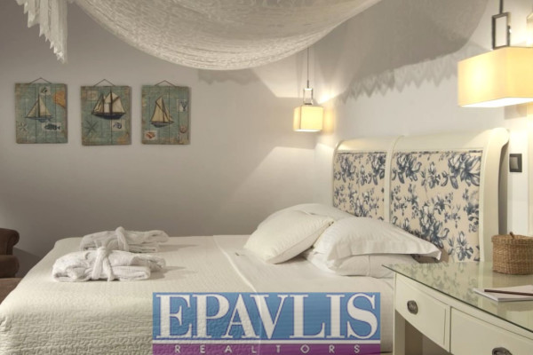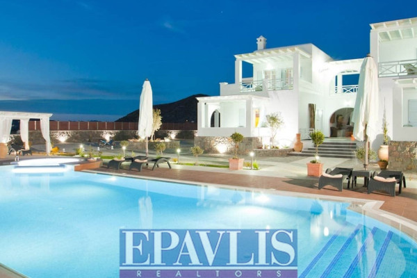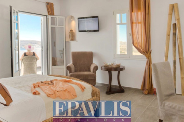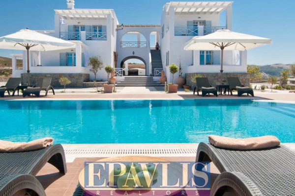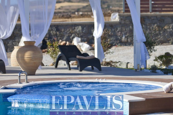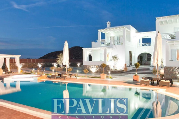 Milos, complex of furnished houses for rent, category 4 keys, in operation, within a plot of 6,250 sq.m. built in 2013, with remaining construction of 700 sq.m. in case of change of use to a hotel. The existing construction of the building is 550 sq.m., which consists of 9 premium rooms of 35 sq.m. - 40 sq.m., communal gathering areas, reception, children's play area, book room, outdoor landscaped areas, 2 swimming pools (one for children) and outdoor jacuzzi. The surrounding area is landscaped, there is a borehole with hot water, while the amphitheater position of the property ensures an excellent sea view. In addition, there is the possibility of organizing events in the space, and the provision of extra amenities to guests. It is located close to Adamantas port, the airport and the excellent swimming beaches of Milos.