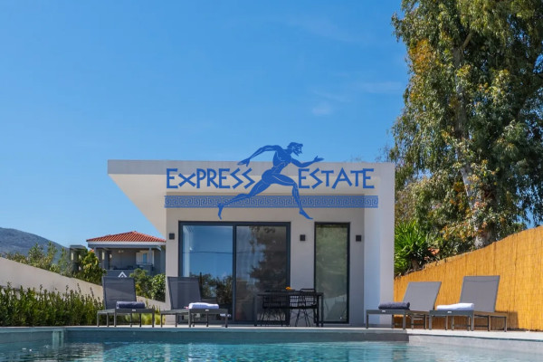 Property Code: 2053968. Detached house For Rent, floor: Ground floor, in the area: Marathon - Agios Panteleimonas. The area of the property is 80 sq.m. and is located on a plot of 1,000 sq.m. It consists of: 2 bedrooms, 2 bathroom/s, 1 kitchen/s, 1 living room/s, while it has 1 parking spaces (1 in an open area). It was built in 2024, while also available Air Conditioning, Solar, has Aluminum frames with Double glazing, energy certificate: A and the floors are: Tiles. Its condition is: Newly built, Amazing, has a sea view, Openness and has an East meridian orientation. The property is Furnished, Seaside, Luxurious and also has the following features and advantages: Screens, Electric. Appliances, Pool, Garden, Security Door, Internet, Quiet neighborhood. Price: €1,400. Express Estate, Contact Phone: 2294050788, email: