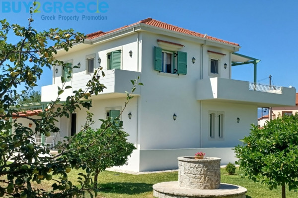 Detached house For sale, floor: Ground floor, 1st (2 Levels), in Amfilochia - Mpoukka. The Detached house is 170 sq.m. and it is located on a plot of 1.516 sq.m.. It consists of: 4 bedrooms, 2 bathrooms, 1 kitchens, 1 living rooms and it also has 3 parkings (3 Open). The property was built in 2007. Its heating is Autonomous with Oil, Heating per level, Boiler are also available, it has Aluminum frames with Double glazed windows, the energy certificate is: D and its floors are Tiles. The property's status is: Excellent condition, it is close to Seaside, 500 Meters from seaside, it has Unobstructed view. The Detached house is Painted, Furnished, With Facade, Bright, Airy, Luxury, it is suitable for Holiday home, Investment and it also has the following unique features and advantages: Electric Appliances, Storage, Garden, Grass. Price: €360,000. Buy2Greece, contact phone: 2107710150, email: