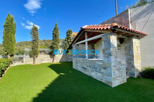 Villa For Sale, floor: Ground floor, 1st (2 Levels), in the area: Styra - Kouvelles. The area of the property is 120 sq.m. and is located on a plot of 620 sq.m. It consists of: 3 bedrooms (1 Master), 3 bathroom/s, 1 kitchen/s, 1 living room/s, while it has 1 parking spaces (1 in an open area). It was built in 2014. The heating of the property is Individual with Electricity, while Air Conditioning is also available, it has Aluminum frames with Double glazing, energy certificate: A and the floors are: Tiles. Its condition is: Newly built, Amazing, it has a Mountain view. The property is Bright, Airy, Luxurious, Storage, Internal staircase, Garden, Security Door, Automatic Watering, Lawn, Trees. Price: €295,000. Buy2Greece, Contact Phone: 2107710150, email: