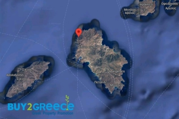 For Sale, Off Plan Plot, in the area: Ios. The Plot is Even, Buildable, Amphitheater, Level, Airy, building factor 0.2 and coverage factor 10%. It is suitable for: Investment, Tourist exploitation, Agricultural use, located near Beach, Port, 11500 Meters from city. The land use is Pure Residential. Price: €675,000. Buy2Greece, Contact Phone: 2107710150, email: