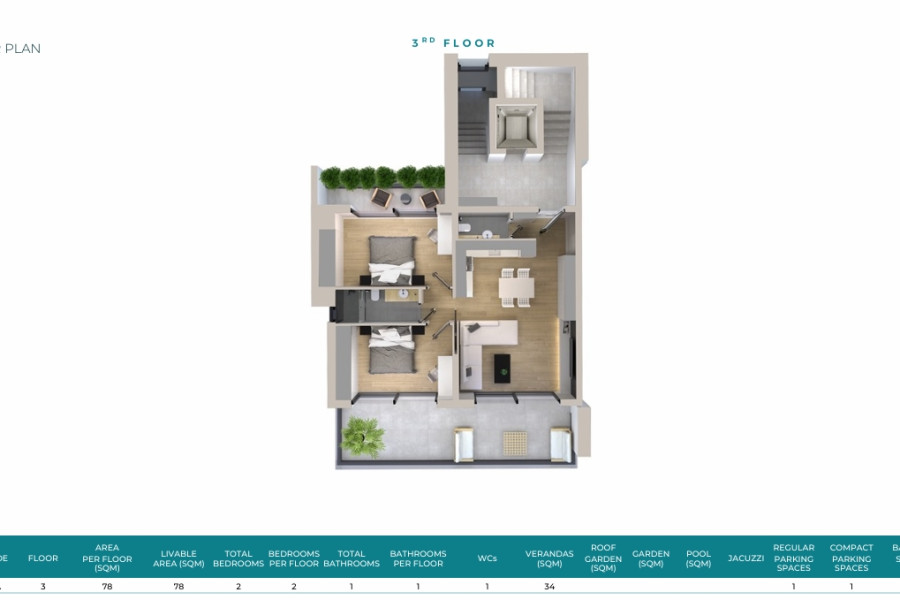 This boutique complex consists of 28 premium residences ranging from 75 to 170 sq m., combining modern design, sustainable construction, and upscale lifestyle. 4 exclusive maisonettes with 3 or 4 bedrooms, private gardens, and swimming pools , 6 stunning penthouses with private roof gardens and Jacuzzis, 18 deluxe apartments . All residents enjoy access to a fully equipped communal gym.