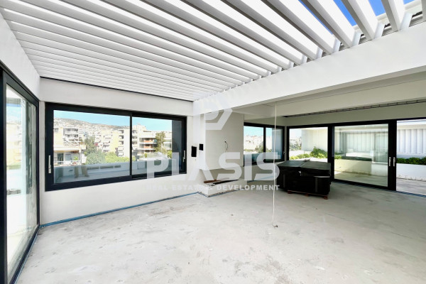 For Sale Maisonette, Glyfada, Center, 194 sq.m., 2 Levels, 3rd Floor, 3 Bedrooms, 2 Bathrooms, 1 WC, 1 Fireplace, Frames: Aluminum, 2 parking, Building Year: 2025, Certificate Energy: A+, Feautures: Elevator, Security door, Security alarm, CCTV, Storage room, Fireplace, Jacuzzi, Double Glazed Windows, Window Screens, Balconies, Luxury, Airy, Roadside, Bright, On Corner, Underfloor, AirConditioning, Solar water system, Boiler, New Construction, Painted, Personal - Heat Pump Heating, View: Sea view, Price: 2.200.000€