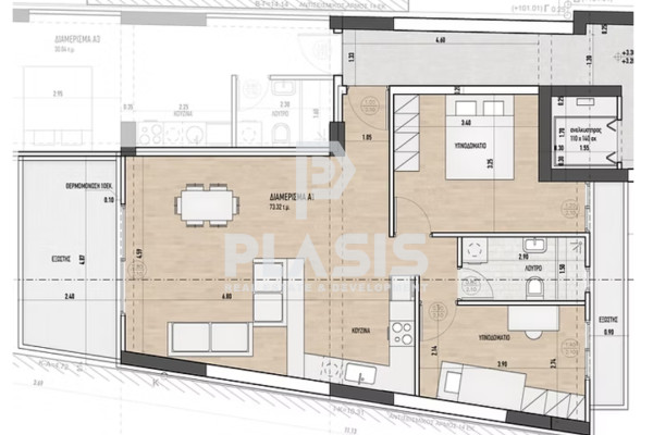Apartment For sale, floor: 1st, in Pagkrati. The Apartment is 74 sq.m.. It consists of: 2 bedrooms, 1 bathrooms, 1 kitchens, 1 living rooms and it also has 1 parkings (1 Underground). The property was built in 2025. Its heating is Personal with Fan coil, Underfloor heating, Thermal insulation, Thermal facade are also available, it has Aluminum frames with Double glazed - Energy Efficient windows, the energy certificate is: A+ and its floors are Tiles, Wooden. The property's status is: Under construction, it is close to Transportation, Super Market, Entertainment centers, Cafe/Restaurants, Local market, it has City views view and it has SouthWest orientation. The Apartment is With Facade, Bright, Airy, Sunny, Airy, Luxury and it also has the following unique features and advantages: Window Screens, Tents, Elevator, Storage, Security door, Porch, Electric shutters, Car charger. Price: €280,000. Plasis Real Estate Syntagma, contact phone: 2103224225, email: