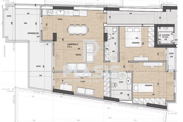 Apartment For sale, floor: 5th, in Pagkrati. The Apartment is 98 sq.m.. It consists of: 3 bedrooms, 1 bathrooms, 1 wc, 1 kitchens, 1 living rooms and it also has 1 parkings (1 Underground). The property was built in 2025. Its heating is Personal with Fan coil, Underfloor heating, Thermal insulation, Thermal facade are also available, it has Aluminum frames with Double glazed - Energy Efficient windows, the energy certificate is: A+ and its floors are Tiles, Wooden. The property's status is: Under construction, it is close to Transportation, Super Market, Entertainment centers, Cafe/Restaurants, Local market, it has City views view and it has SouthWest orientation. The Apartment is With Facade, Bright, Airy, Sunny, Airy, Luxury and it also has the following unique features and advantages: Window Screens, Tents, Elevator, Storage, Security door, Porch, Electric shutters, Car charger. Price: €410,000. Plasis Real Estate Syntagma, contact phone: 2103224225, email: