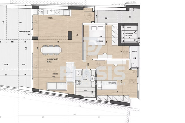 Apartment For sale, floor: 6th, in Pagkrati. The Apartment is 86 sq.m.. It consists of: 3 bedrooms, 1 bathrooms, 1 wc, 1 kitchens, 1 living rooms and it also has 1 parkings (1 Underground). The property was built in 2025. Its heating is Personal with Fan coil, Underfloor heating, Thermal insulation, Thermal facade are also available, it has Aluminum frames with Double glazed - Energy Efficient windows, the energy certificate is: A+ and its floors are Tiles, Wooden. The property's status is: Under construction, it is close to Transportation, Super Market, Entertainment centers, Cafe/Restaurants, Local market, it has City views view and it has SouthWest orientation. The Apartment is With Facade, Bright, Airy, Sunny, Airy, Luxury and it also has the following unique features and advantages: Window Screens, Tents, Elevator, Storage, Security door, Security alarm, Porch, Electric shutters, Car charger. Price: €370,000. Plasis Real Estate Syntagma, contact phone: 2103224225, email: