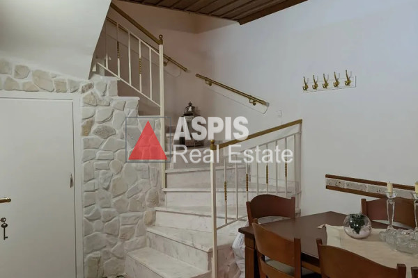 For sale is an excellent three-level maisonette, ground floor/1st/2nd floor, 144 sq m with three bedrooms, two living rooms and two bathrooms. The property is fully furnished with high-quality furniture and equipped with electrical appliances. It has large verandas with beautiful views, front and back yard, security door, tiled floors, double-glazed thermally insulated frames, fireplace in the living room, alarm, electric fountain, shelter and autonomous oil heating. In addition, it has a storage room and a parking space.
