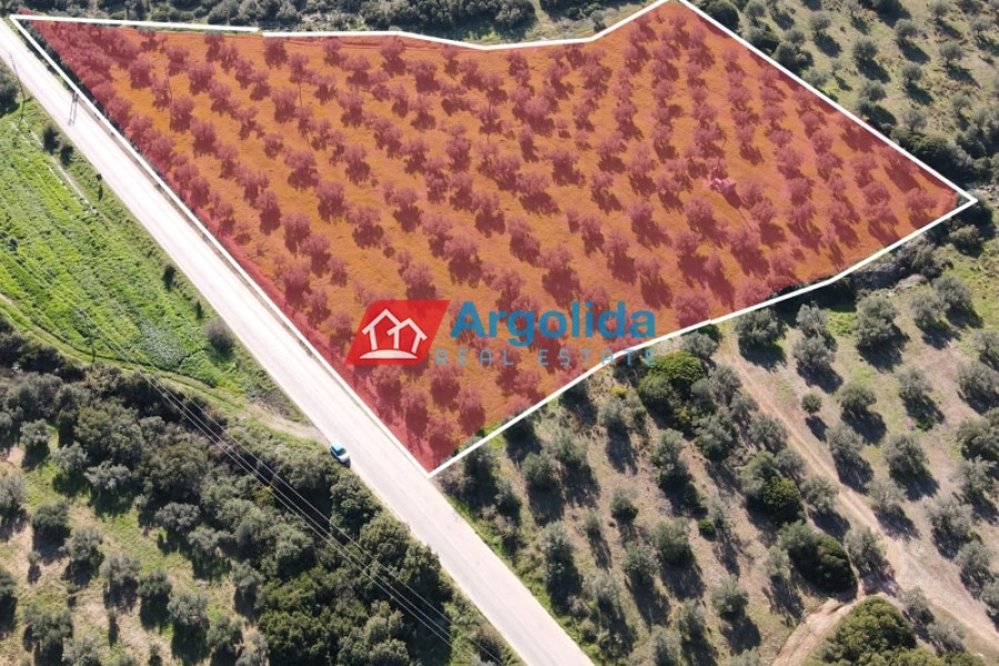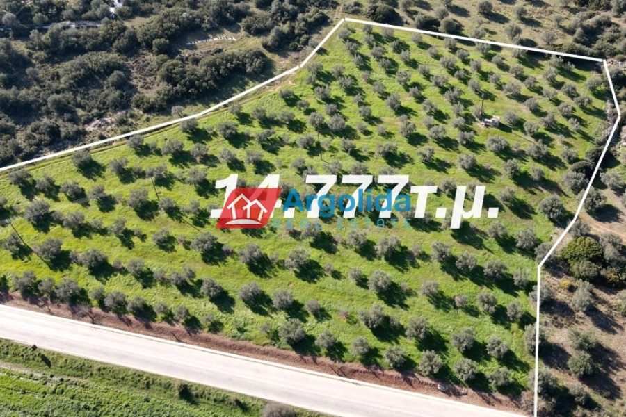 In the village of Fichtia, just 14 km from Argos, a land parcel with a total surface of 14,777 sq.m. is available for sale, featuring a 152-meter frontage on the Argos–Corinth provincial road. The plot is gently sloped and offers beautiful views over the green valley and the surrounding mountains, making it an excellent option for buyers seeking land with long-term potential. The property includes approximately 160 mature, irrigated olive trees, watered automatically through a borehole, and features a 25 sq.m. storage building within its boundaries. It also benefits from electricity supply and is located very close to the village and essential shops, adding convenience and value. The land is complete and buildable according to planning regulations, and under specific conditions it can be divided into two independent buildable plots, each offering the possibility of constructing up to 260 sq.m. of residential space. Furthermore, thanks to its extensive road frontage and direct access to the main route, the property is also suitable for commercial use with higher building allowances and the potential for traffic access approval, making it a strong investment opportunity in a developing area.
