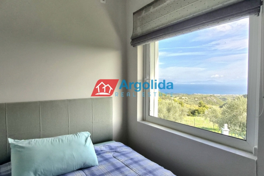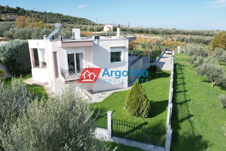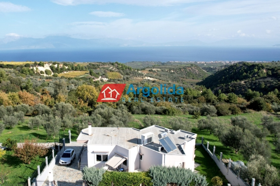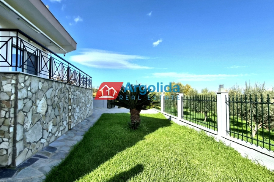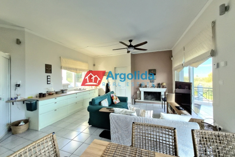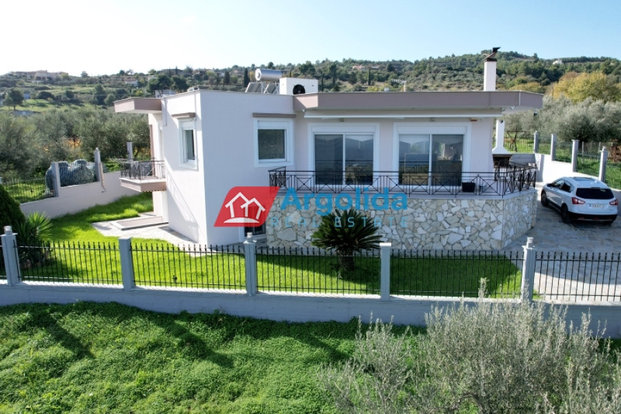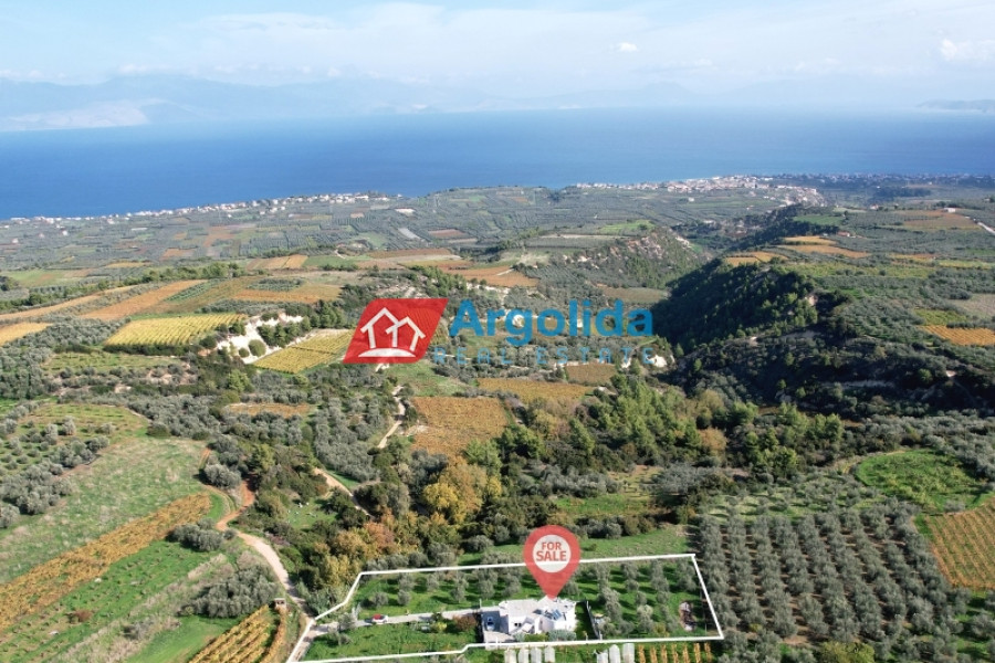For sale: a single-storey house in excellent condition, built in 1993, located in Lalioti, Corinthia, on a 3,500 sq.m. plot, fully renovated internally in 2024 and offered fully furnished, featuring 3 bedrooms, a living room, kitchen, 1 bathroom and a 55 sq.m. storage area, with handcrafted solid-wood kitchen cabinets, built-in electrical appliances, brand-new beds, living room and outdoor furniture, equipped with solar water heater, air conditioning, ceiling fans, fireplace, aluminum windows with double glazing and screens, electric shutters and awnings, and aluminum security doors. The exterior is beautifully landscaped with Karystos stone, BBQ area, lawn, planting areas, two electric gates and double fencing, while the property includes underfloor oil heating, pre-installation for a heat pump, alarm system with 7 cameras, and full agricultural equipment. The plot features 50 olive trees and various fruit trees, fertile soil for gardening, two 3-ton water tanks supplied by a private borehole, and an automatic irrigation system, along with tools, machinery and a backup generator purchased in 2024–2025. Set in a peaceful, green environment with unobstructed panoramic views of the Corinthian Gulf, it is just 10 minutes from the beach and 20 minutes from Kiato, close to mountain destinations such as Lake Stymphalia and Trikala Corinthias, and near several renowned wineries, making it ideal for those seeking relaxation, privacy and a nature-oriented lifestyle.