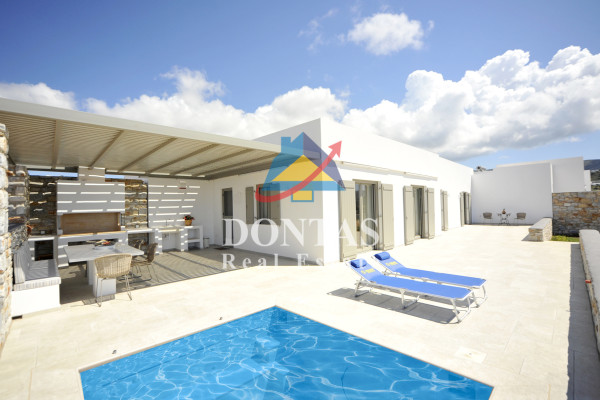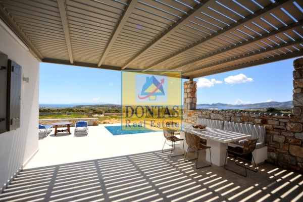 Detached house For sale, floor: Ground floor, in Paros - Agkairia. The Detached house is 159 sq.m. and it is located on a plot of 2,835 sq.m.. It consists of: 3 bedrooms (1 Master), 2 bathrooms, 1 wc, 1 kitchens, 2 living rooms and it also has 2 parkings (2 Open). The property was built in 2023. Its heating is Autonomous with Heat pump, Solar water system are also available, it has Wooden frames with Double glazed windows, the energy certificate is: A+ and its floors are Tiles. The property's status is: New development, Excellent condition, it is close to Sea, Seaside, Super Market, Cafe/Restaurants, Local market, it has Sea, Panoramic, Unobstructed view. The Detached house is Painted, With Facade, Bright, Airy, Luxury and it also has the following unique features and advantages: Window Screens, Electric Appliances, Storage, Swimming pool, Garden, Security door, Security alarm, BBQ, Satellite Receiver, Night stream, Pets allowed, Porch. Price: €960,000. Dontas Real Estate, contact phone: 2106231555, Mob: 6980502020, email: