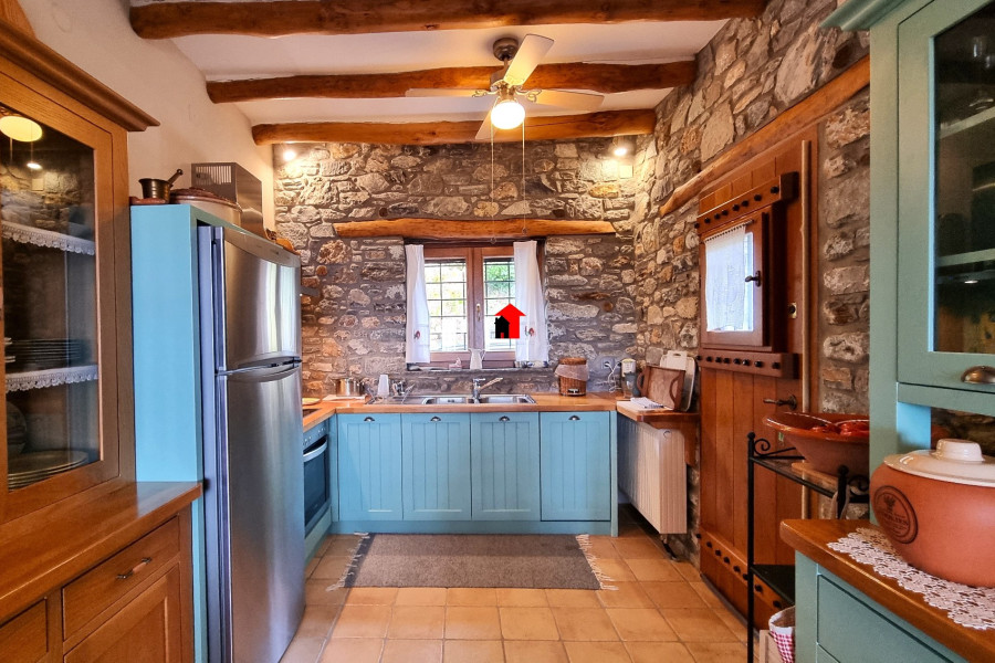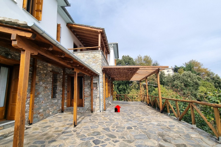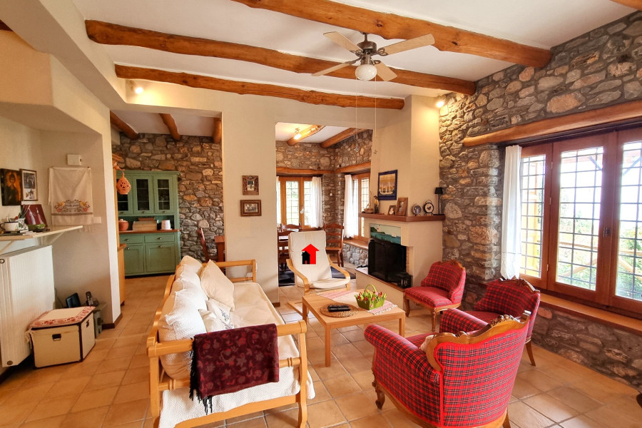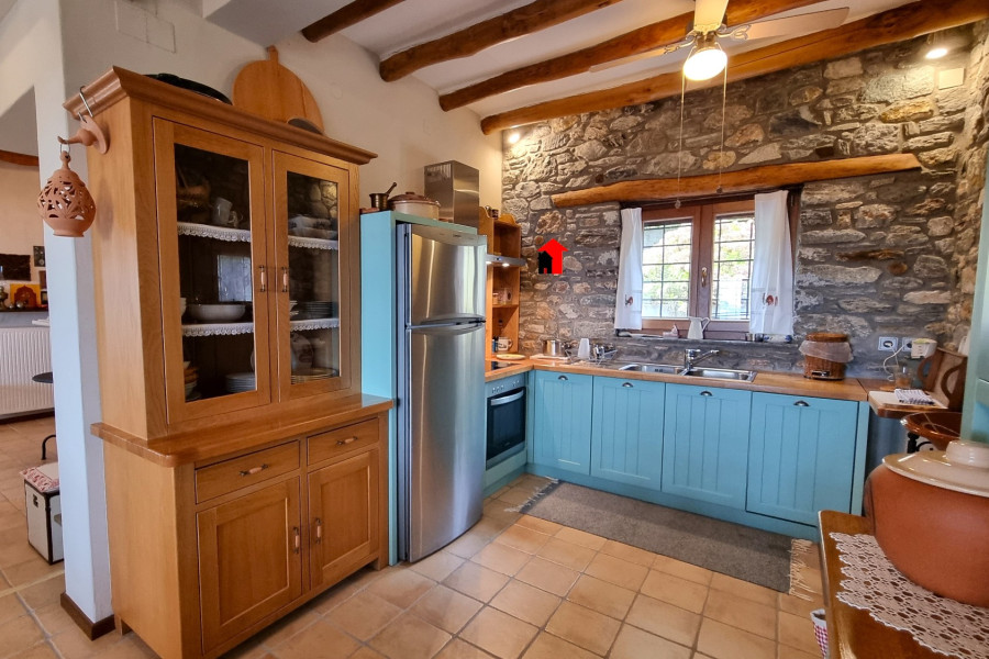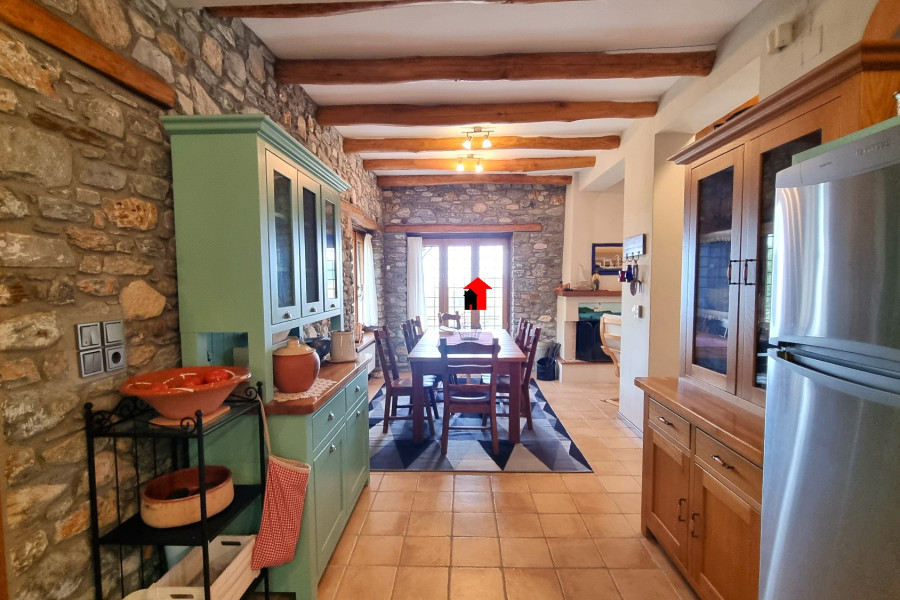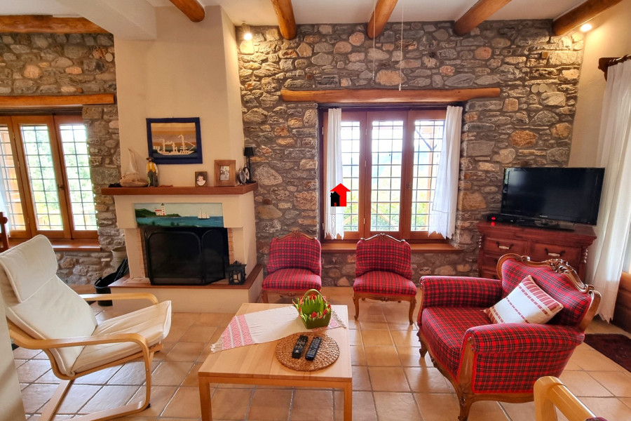 A beautiful 2-storey plus basement detached stone house is for sale, with a total area of 269sqm in a plot of 1932,47sqm located within the plan in Agios Dimitrios Mouresi in Pelion, with a magnificent view of the Aegean Sea and the surrounding area. The property is a contemporary construction built in 2010 (license) and is developed as follows: - Ground floor of 92,49sqm consisting of a large, particularly bright and pleasant open plan living room with fireplace, dining room, tasteful ergonomic kitchen with its own independent exit to the garden, 1 bedroom with built-in wardrobes, bathroom with window and useful storage room. All the rooms on the ground floor communicate with the large paved terrace that "hugs" the perimeter of the property. - Floor area 83,90sqm with a spacious living room that in a smart way through 2 large shading curtains is converted into an additional hospitality space if the occasion requires it, 1 master bedroom with its own bathroom, 2 more bedrooms, bathroom with window. From the living room we can get out to a spacious covered terrace from where we can enjoy the wonderful view! - Basement area 92,49sqm where the boiler room and the oil burner are placed since the property has oil heating with full autonomy per floor and a large utility space suitable for any use. The residence is an exceptional private construction, all of which testify to the smallest detail of the elegance, the refined taste of its owners and the unique quality of the materials that impart a quiet luxury and a harmony that is felt by the visitor from the first moment.. It has been built from A’ quality materials, it has 3 huge retaining supporting walls made of reinforced concrete, insulation, a traditional roof made of Pelion stone tiles, all bedrooms have large wardrobes with a special and tasteful ventilation system and all its wooden parts are made of solid wood, including the wooden frames with double glazing and of course the beautiful wooden chestnut beams that run through the ceiling of the living room. The floor is covered with terracotta tiles and the bathrooms are made of pressed cement mortar in pale earthy shades. In the kitchen, our gaze is captured by the magnificent ceramic composition above the electric stove that represents an idyllic moment of life in the village.. of past decades. In most of the house, the stone from which it is built is evident, both internally such as in the living room - kitchen area and the staircase leading to the upper floor, but also externally, tastefully following the traditional dictates of Pelion architectural design. The property also has screens, a pergola, an alarm system, it is airy, bright and designed to serve the needs of a permanent residence. In the garden area we find various corners suitable for outdoor cozy resting in the shade and parking space for several cars. It has an easy car access. The house is suitable as a permanent or holiday home, or with minor modifications to operate as 2 independent apartments which could be a very satisfactory source of income if exploited for tourism. It is offered without the furniture and the appliances. For more pictures visit: https://newagerealestate.gr/en/property/for-sale-detached-house-of-269sqm-in-agios-dimitrios-pelion/ New Age Real Estate
