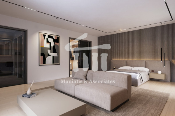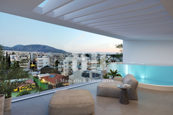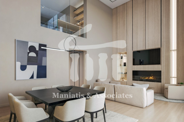 In detail: In the main area of the 2nd floor residence we find the living room which has double height with openings that allow light to diffuse into the spaces, a large terrace on the pool facade and unlimited views of the mountain and park. On the same level there is the kitchen which is independent, a W.C. and 2 spacious bedrooms with their own bathroom. On the second level of the house there is a large bedroom of 60 square meters with sea view, which has its own bathroom and Walk-in Closet. As the project is in progress there is the possibility of modifying the interior spaces to create 5 bedrooms. Among other things, the maisonette has a natural gas fireplace, autonomous heating with individual natural gas boiler, air conditioners with VRV slots system, underfloor heating, triple energy solar, elevator security door, alarm, smart home KNX remote control management system, oak floors in all areas. Double aluminum frames with thermal break energy with anti-vandalism glass. Security door, alarm system, Swimming pool on the veranda, 7.5 square meters storage room as well as 2 underground parking spaces. Autonomy from photovoltaics. Energy Class A+ delivery June 2025. Price: 2,450,000. Maniatis & Associates, Contact Phone: 2104190703, email: