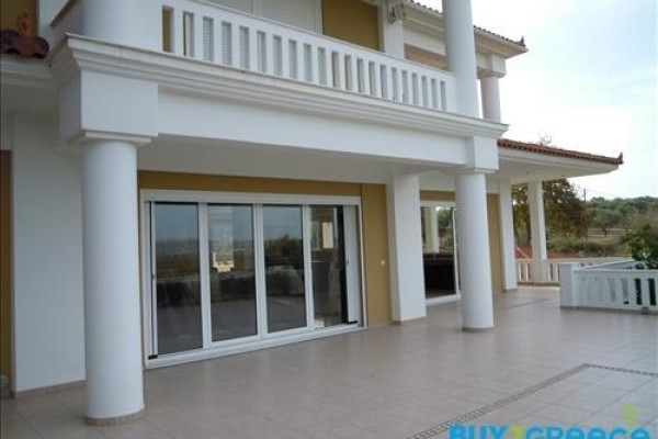 Maisonette For Sale, floor: Ground Floor, 1st, 2nd (3 Levels), in the area: Pyrgos. The area of the property is 550 sq.m. and is located on a plot of 2,615 sq.m. It consists of: 7 bedrooms, 6 bathroom/s, 1 wc, 4 kitchen/s, 4 living room/s, while it has 4 parking spaces (4 in closed area). It was built in 2009. The heating of the property is autonomous with a heat pump, while underfloor heating is also available, solar, it has aluminum frames with triple glazing, energy certificate: B and the floors are: Tiles. Its condition is: Newly built, Good, Very good, Amazing, it has a view of Green, Openness, Panoramic, Unobstructed and it has a Southeast orientation. The property is Painted, Frontage, Bright, Airy, Sunny, Airy, Ground Floor, Luxury, Stone, is suitable for Country House, Professional, Golden visa, Investment, Income and also has the following features and benefits: Screens, Elevator, Storage, Internal Staircase, Garden, Security Door, Alarm, Internal Elevator, Without Shared, BBQ, Automatic Watering, Trees, Pets Allowed, Terrace, Gym. Price: €1,500,000. Buy2Greece, Contact Phone: 2107710150, email: