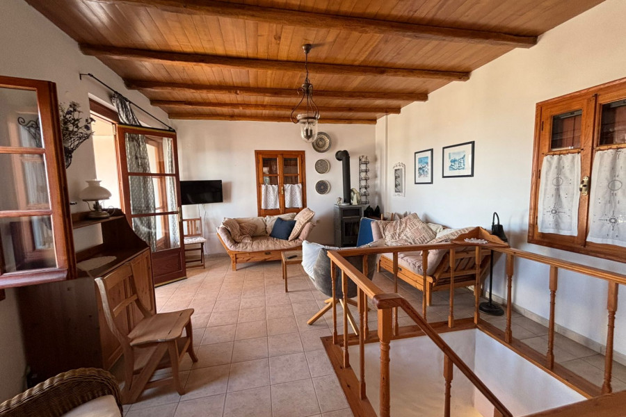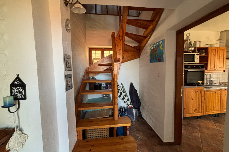 The property is spread over two levels: On the ground floor there is one bedroom, a kitchen, and a bathroom. On the first floor there is another bedroom, a spacious living room, a second bathroom, and a balcony with a lovely view of the village and the natural landscape.