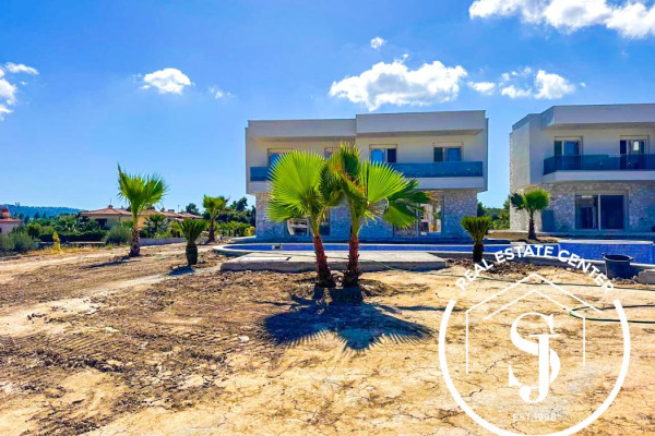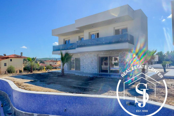 Villa For Sale, floor: Ground floor, in the area: Kassandra - Kallithea. The area of the property is 100 sq.m. and is located on a plot of 500 sq.m. It consists of: 2 bedrooms, 2 bathrooms, 1 kitchen, 1 living room. It was built in 2024, it has Aluminum frames with Double glazing, energy certificate: Not required and the floors are: Tiles. Its condition is: Very good, it is close to the Sea, Beach, School, Square, Church, Super Market, City Center, it has a view of Green, Opening. The property is Painted, suitable for Holiday home, Investment, Income and also has the following features and benefits: Screens, Internal staircase, Pool, Garden, Security Gate, Pets Allowed, Veranda. Price: €270,000. Real Estate Center Susan Jameson, Contact Phone: +302374063603, email: