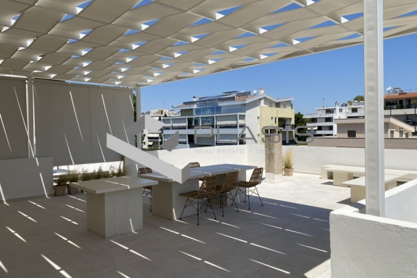 For Rent Floor Apartment, Voula, Kato Voula, 107 sq.m., 3rd Floor, 2 Bedrooms, 2 Bathrooms, 1 WC, Floors: Tiles, Frames: Aluminum, 1 parking, Building Year: 1993, Certificate Energy: C, Feautures: Elevator, Security door, CCTV, Double Glazed Windows, Window Screens, Balconies, BBQ, Furnished, Luxury, Penthouse, Airy, Roadside, Bright, AirConditioning, Solar water system, Renovated, Personal - Electricity Heating, View: Sea view, Price: 3.500€