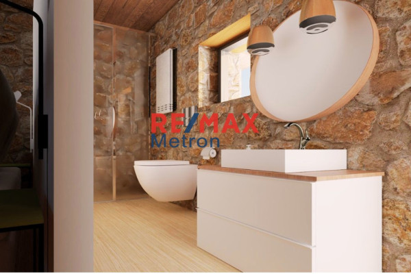 Luxurious two-level stone maisonette with a total area of 77.29 sq.m. (Ground floor 51.69 sq.m. + Attic 25.60 sq.m.), ideally designed for a holiday home, permanent use or investment development. Located in the center of Skala Fourka, in a quiet settlement and just 400 meters from the beach.