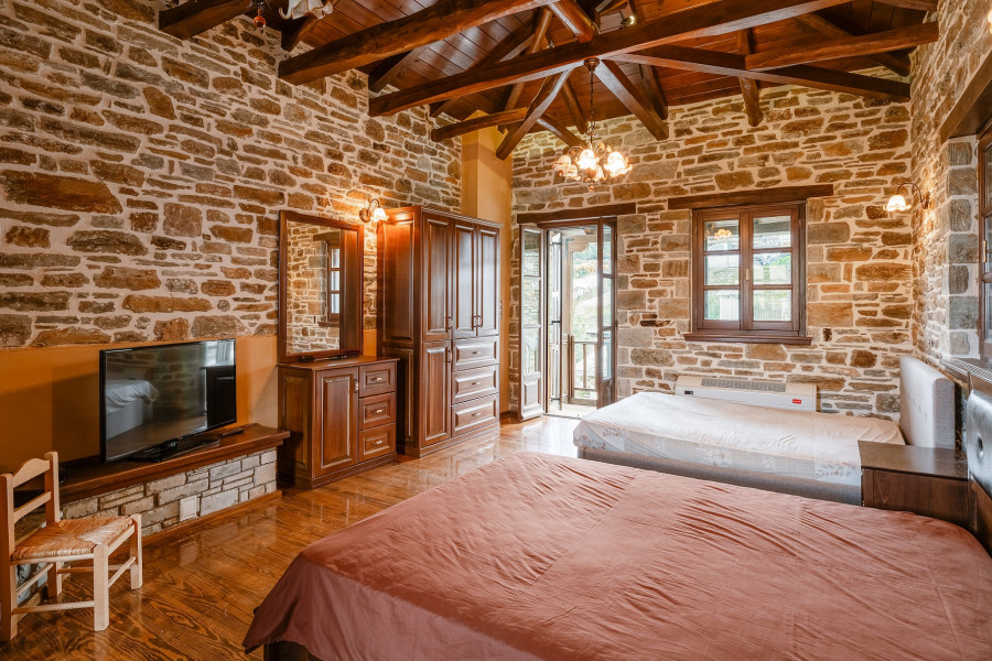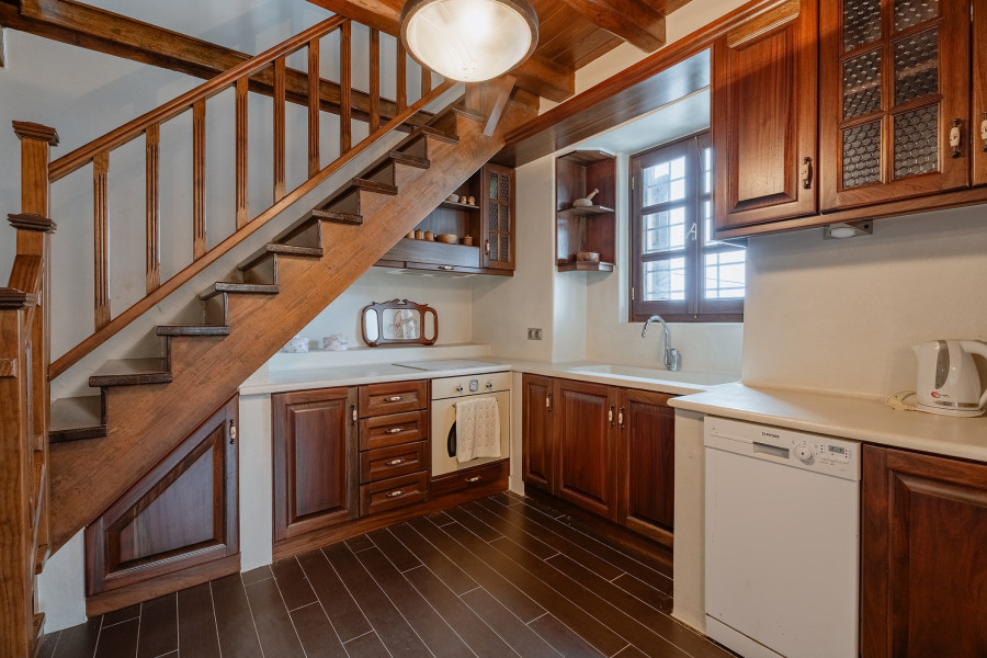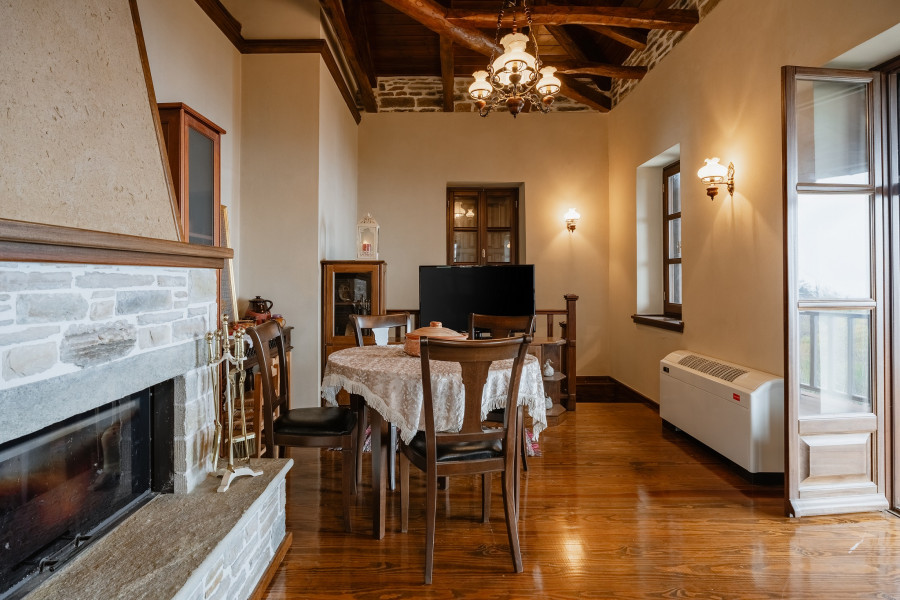 The independent guesthouse, with a total area of 82 sq.m., includes on the ground floor an open-plan space with a kitchen and dining area, as well as 1 bathroom, while on the 1st floor there is 1 comfortable bedroom with a fireplace and a private balcony.