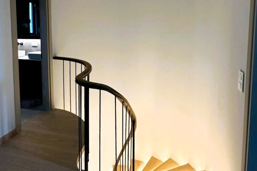 The handcrafted internal staircase and the premium Italian wooden flooring featured on both levels enhance the residence’s elegant character. The spacious living room, functional kitchen and additional auxiliary spaces ensure comfort and practicality, while the three large bedrooms with ample wardrobes fully meet the needs of a modern family.