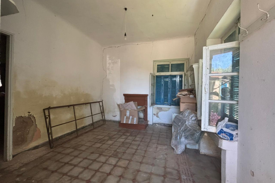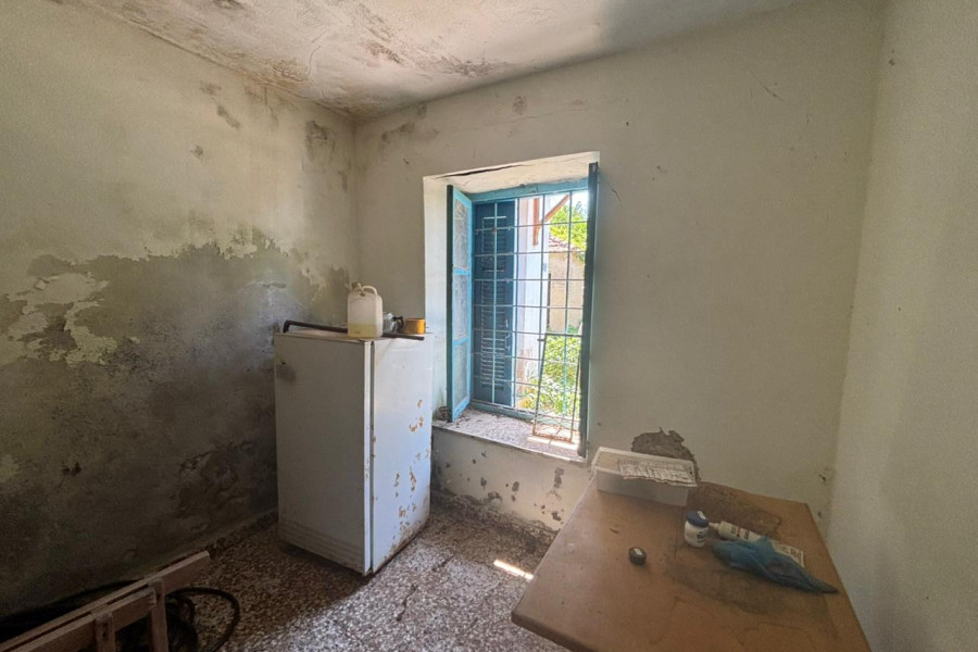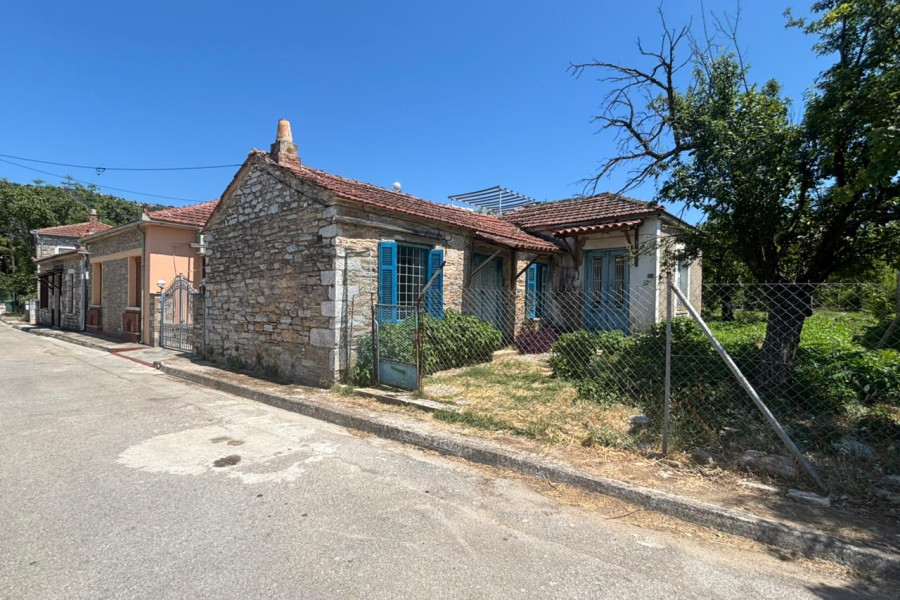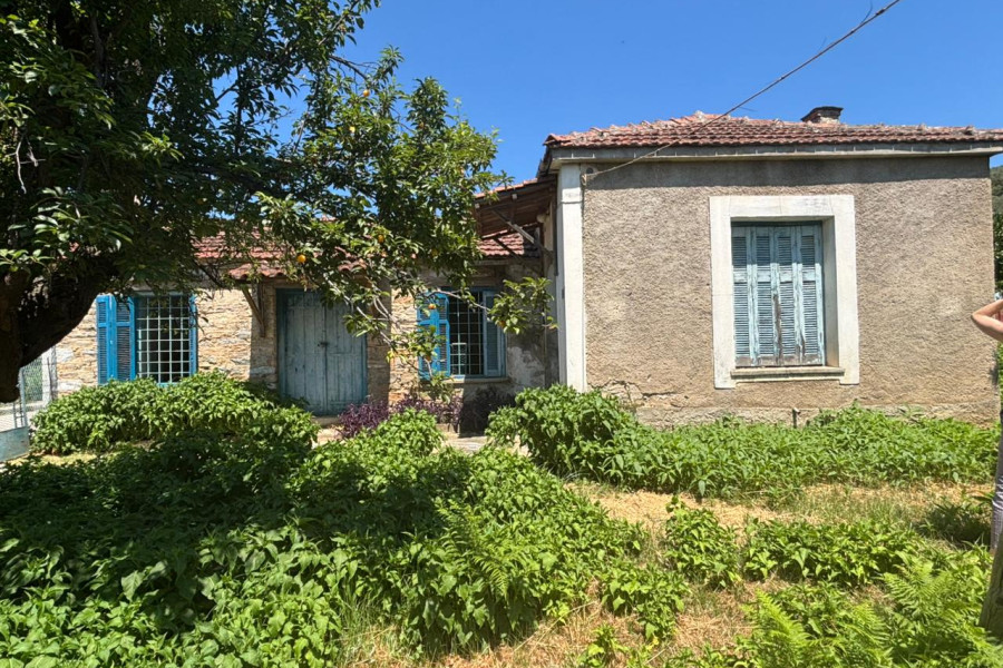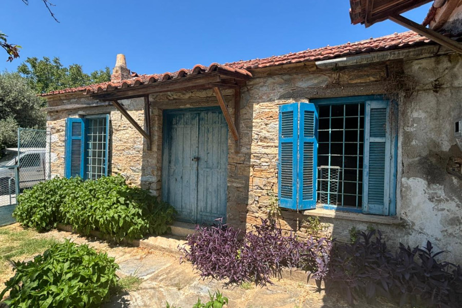 Stone-Built detached house of 75 sqm for sale on a plot of 841 sqm in Milina, Pelion. The property has a building permit for a 36 sqm extension and includes an additional structure of 28 sqm within the plot. The land is flat and features various fruit trees. The house is located in a quiet neighborhood, just 350 meters from the sea.