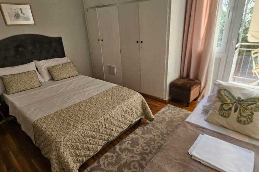 For sale apartment of 55 sq.meters in Athens. The apartment is situated on the in der 1. Etage. It consists of 2 bedrooms, living room, one kitchen, one shower WC. Flat has double-frontage layout. There are: solar panels for water heating, air conditioning, awnings, heating. The owners will be leaving the furniture with the sale.