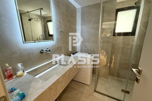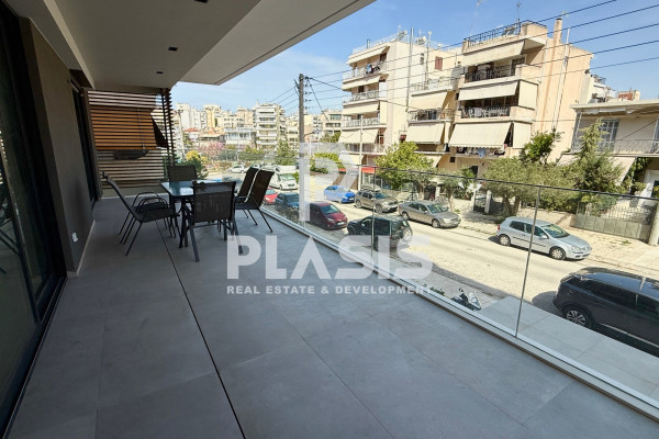 Apartment For sale, floor: 1st, in Alimos - Trachones. The Apartment is 85 sq.m. and it is located on a plot of 800 sq.m.. It consists of: 2 bedrooms, 1 bathrooms, 1 wc, 1 kitchens, 1 living rooms and it also has 1 parkings (1 Pilotis space). The property was built in 2022. Its heating is Personal with Natural gas, Underfloor heating, Air conditioning are also available, it has Thermal brake frames with Double glazed windows, the energy certificate is: A+ and its floors are Wooden. The property's status is: New development, Excellent condition, it is close to Metro, Tram, Transportation, Seaside, School, 12000 Meters from city, 250 Meters from seaside, 29000 Meters from airport, it has Mountain view. The Apartment is Painted, On Corner, With Facade, Bright, Airy, Ramp / Wheelchair access, it is suitable for Business, Investment and it also has the following unique features and advantages: Window Screens, Elevator, Electric Appliances, Storage, Garden, Security door, CCTV, Security alarm, Internet, Sattelite Receiver, Night stream, Automatic watering, Grass, Trees, Pets allowed. Price: €450,000. Plasis Real Estate Glyfada, contact phone: 2109601909, email: