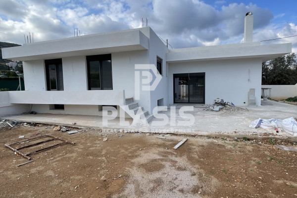 Detached house For sale, floor: Basement, Ground floor (2 Levels), in Markopoulo - Porto Rafti. The Detached house is 135 sq.m. and it is located on a plot of 525 sq.m.. It consists of: 4 bedrooms, 2 bathrooms, 1 wc, 1 kitchens, 2 living rooms and it also has 4 parkings (4 Open). The property was built in 2025. Its heating is Fan coil, it has Aluminum frames with Double glazed - Energy Efficient windows, the energy certificate is: A+. The property's status is: Incomplete, it is close to Transportation, Sea, Seaside, Kindergarten, Super Market, Cafe/Restaurants, 300 Km from seaside, 15 Km from airport, it has Mountain, Nature view and it has EastWest orientation. The Detached house is Bright, Airy, Sunny and it also has the following unique features and advantages: Window Screens, Garden, Security door, Quiet neighborhood, Septic tank. Price: €450,000. Plasis Real Estate Glyfada, contact phone: 2109601909, email: