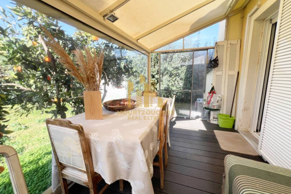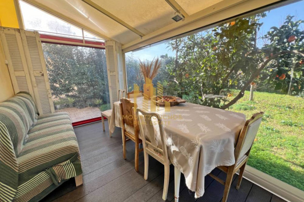 The maisonette provides a fully furnished experience, equipped with electrical appliances. Constructed in 2010, it boasts aluminum frames with double glazing and also offers two external parking spaces. Its location is ideal, very close to the sea, while the outdoor spaces are delightful and partially covered with electric awnings.